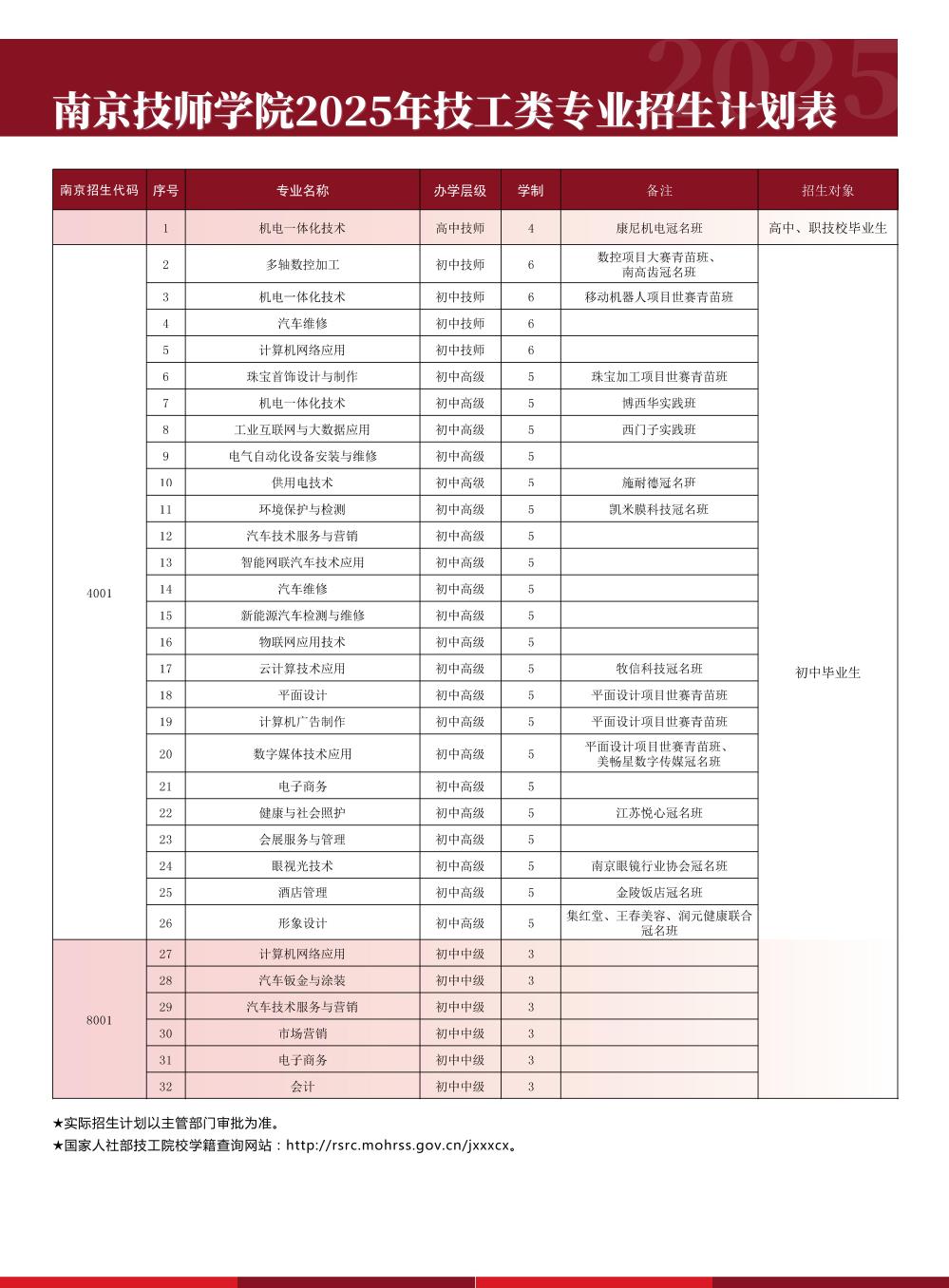 乐动在线登录2025年技工类专业招生计划表